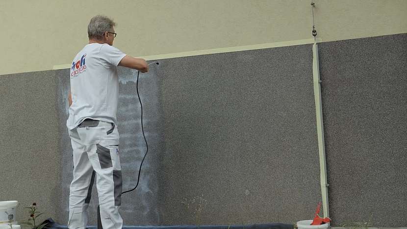 Na fasádě budov bývá nastříkaný mozaikový sokl. Po několika letech se začne materiál uvolňovat, při doteku se drolí. Pokud je omítka celistvá, dá se ještě zachránit. Použijeme fixační lak nejprve nástřikem, po zaschnutí můžeme již použít váleček. Jak postupovat při takové renovaci, se dozvíte v našem videu.